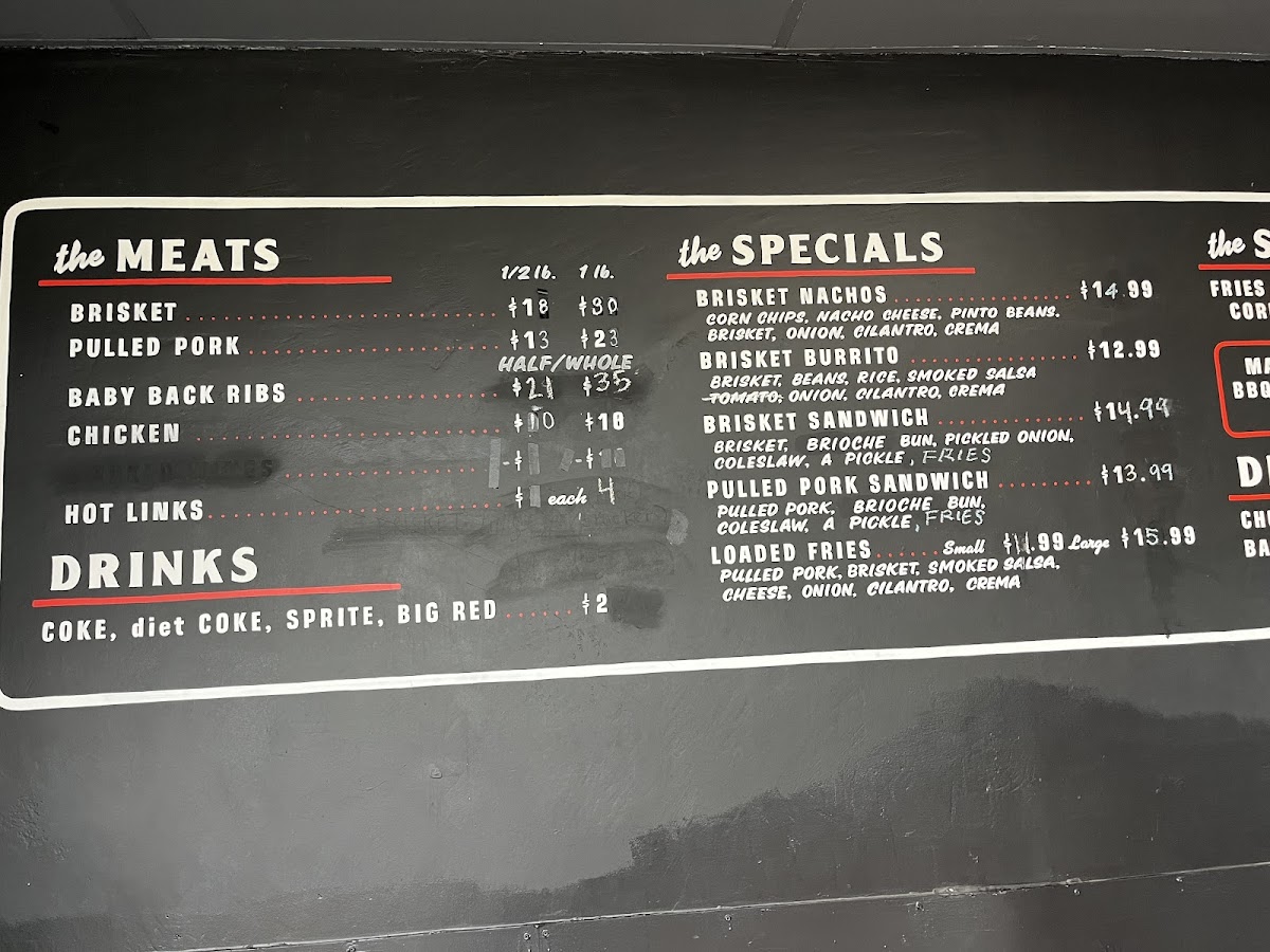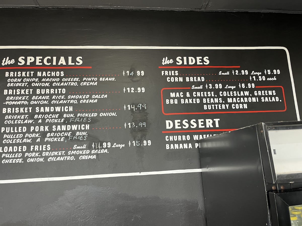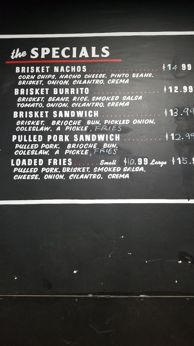 Start your meal with Loaded Fries or the more substantial Large Loaded Fries, both offering a perfect combination of crispy fries topped with flavorful toppings. If you're in the mood for something a bit more substantial, try the Brisket Burrito or the delicious Brisket Nachos, both featuring tender, smoky brisket as the star ingredient. For a classic BBQ experience, the Brisket Sandwich is a satisfying choice that won’t disappoint.